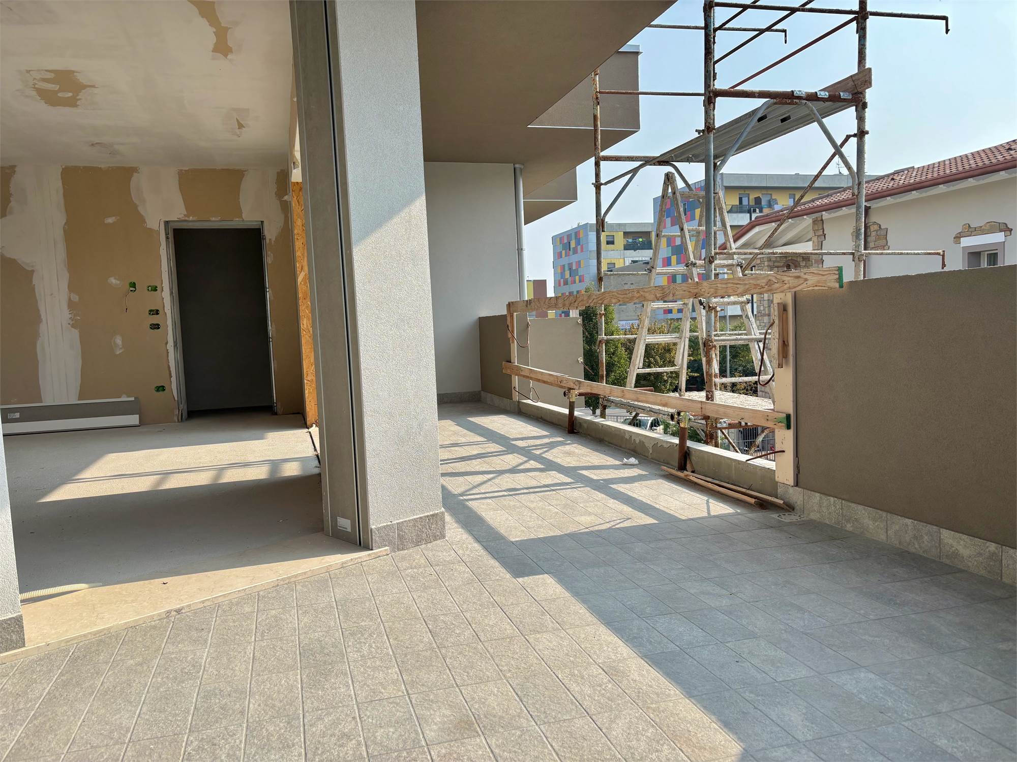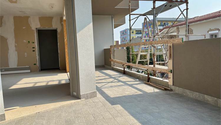 Dalle portefinestre della cucina e del soggiorno, che illuminano il living di luce naturale, si accede a una terrazza vivibile di oltre 20 mq, perfetta per cene all’aperto o per chi ama uno spazio esterno senza l’impegno di un giardino.