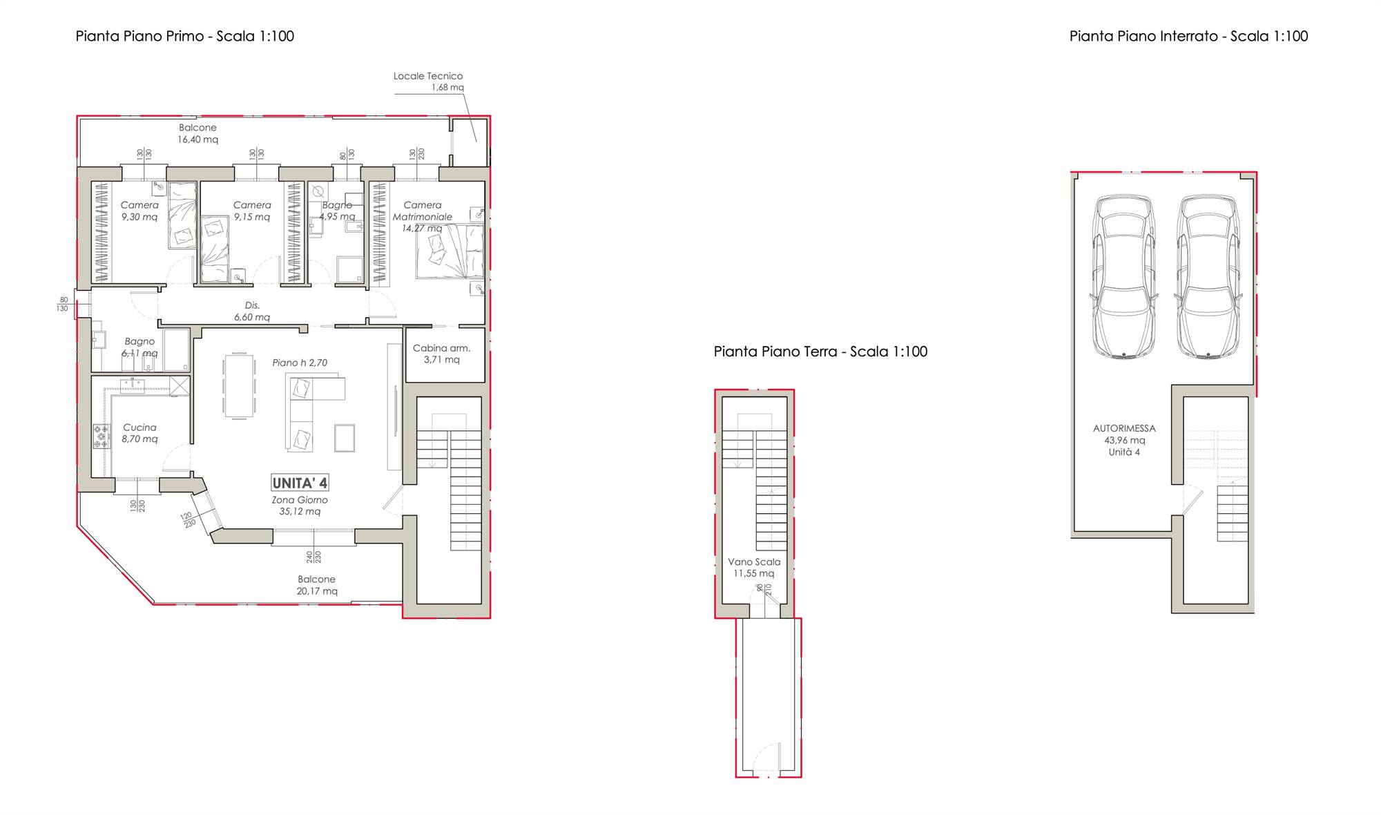 Dal vano scala privato si accede infine al box doppio in larghezza di oltre 43 mq, comodo e facilmente accessibile.