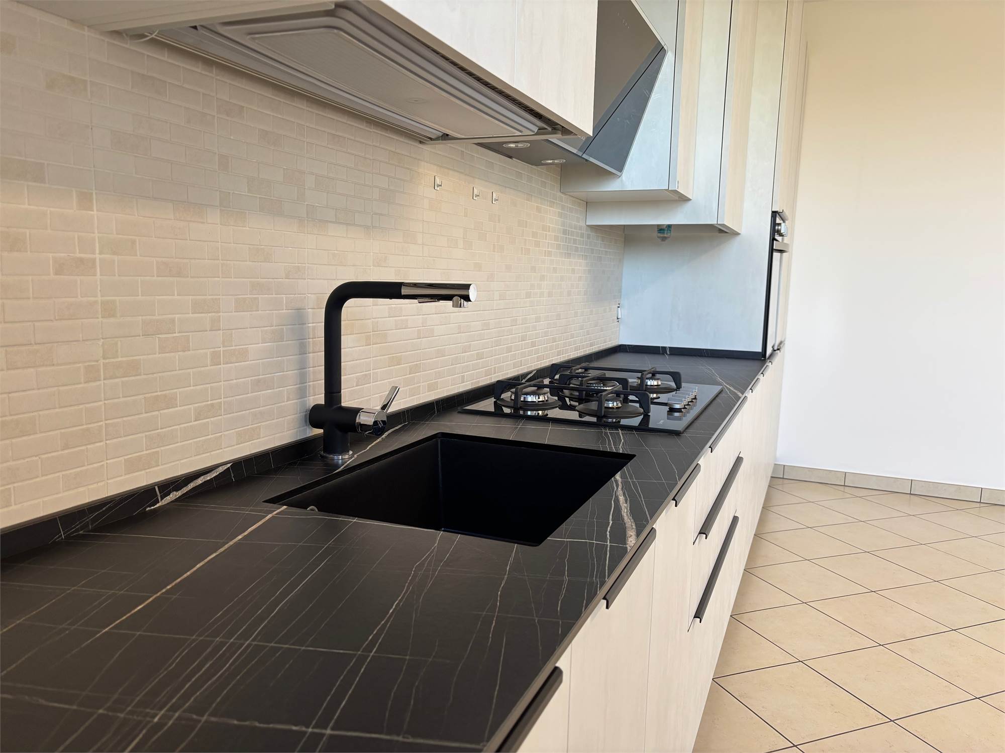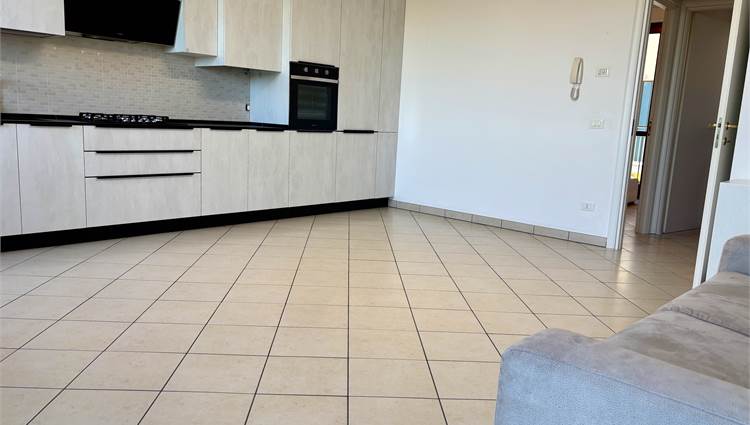 L’ingresso si apre su un ampio open space con accesso diretto al primo balcone: un ambiente accogliente, perfetto per vivere la quotidianità o ricevere gli amici. Dal soggiorno la vista aperta regala luce e una sensazione di spazio davvero piacevole.