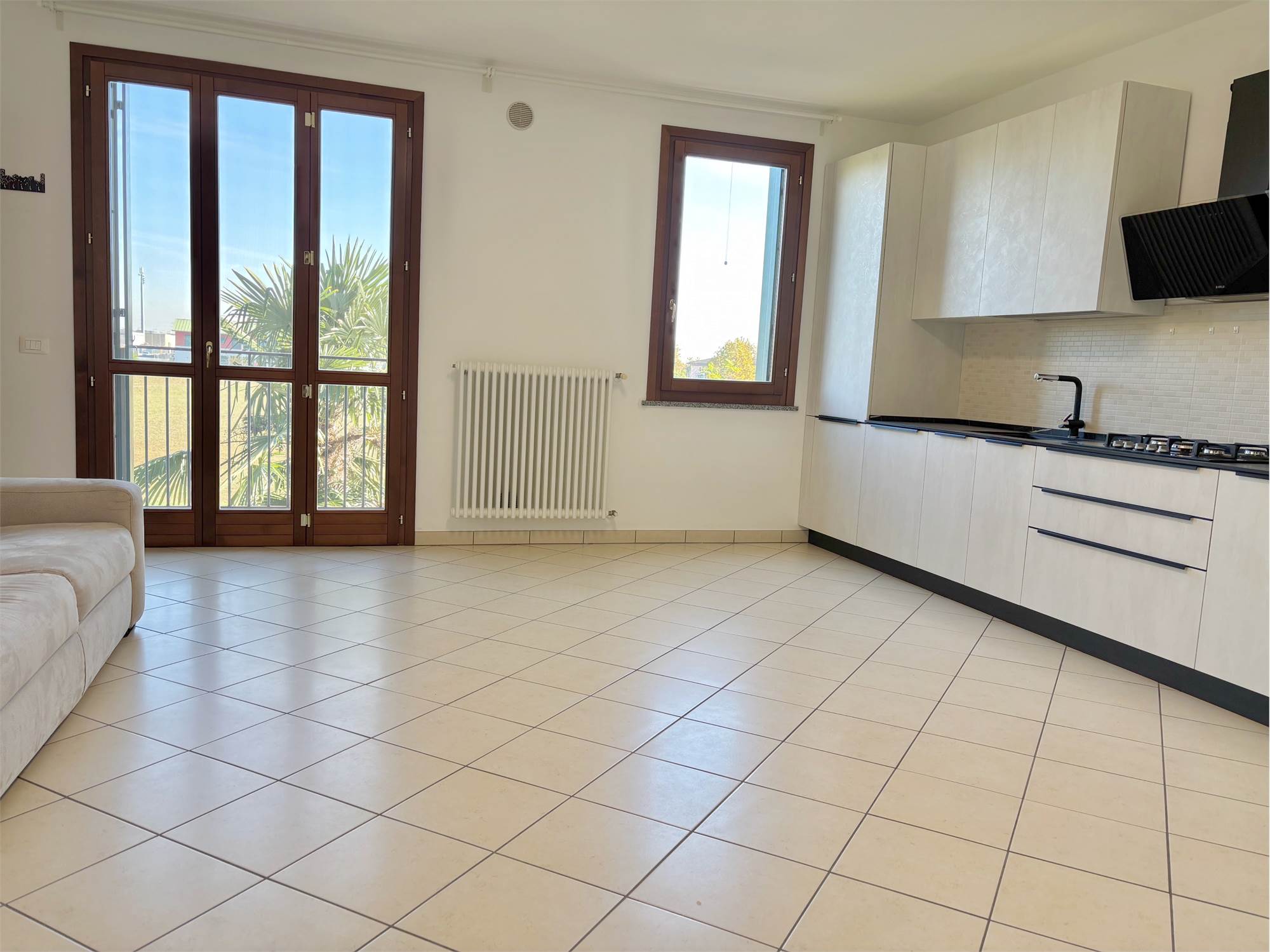 In una tranquilla e recente zona residenziale di Antegnate, all’interno di un complesso del 2006, ti aspetta un trilocale luminoso e ben distribuito al primo piano con pochissime spese condominiali.