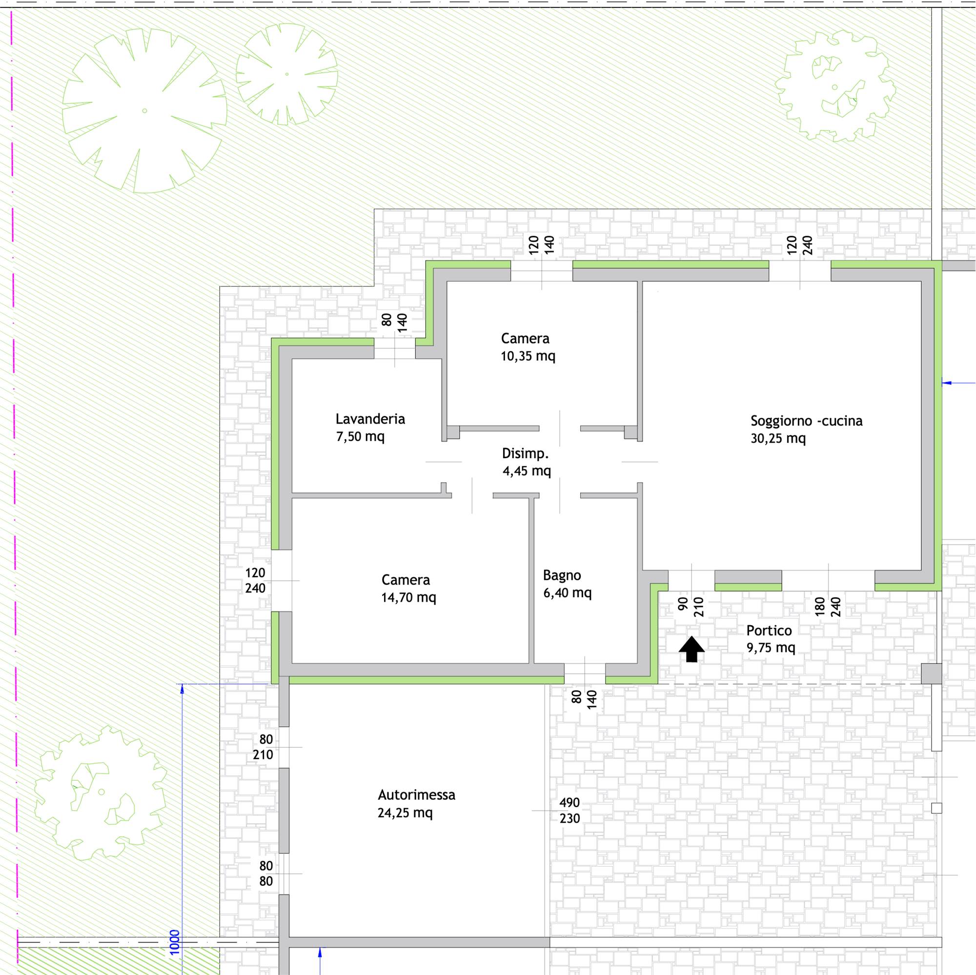 Per tutto il nuovo cantiere sono stati previsti giardini finalmente degni di questo nome, ampi e vivibili. In questa unità nello specifico trovi circa 155 mq di area verde esclusiva, uno spazio perfetto per chi sogna il proprio angolo all’aperto senza rinunciare alla comodità di una casa su un unico livello.