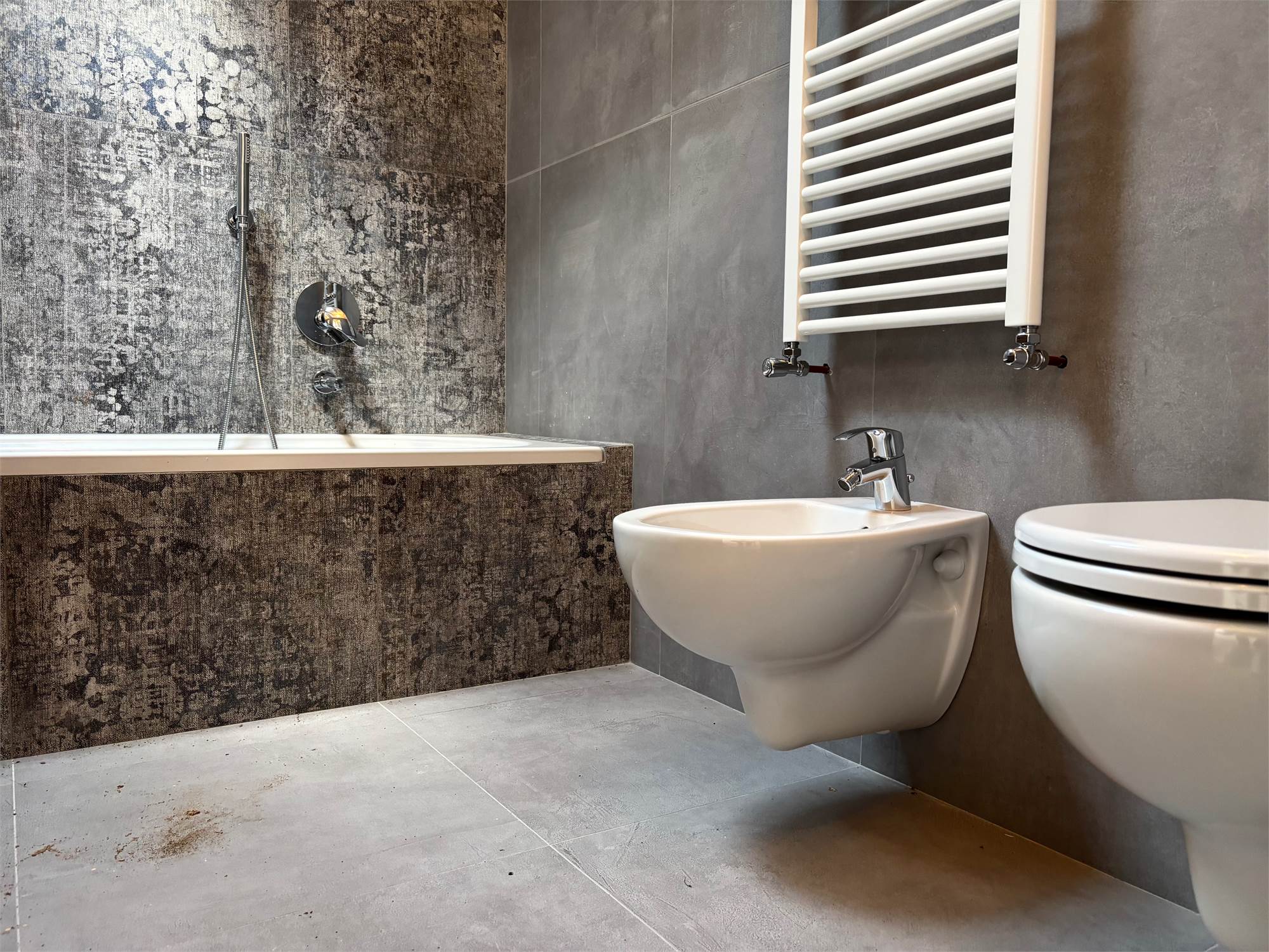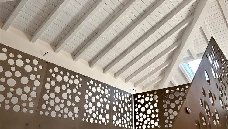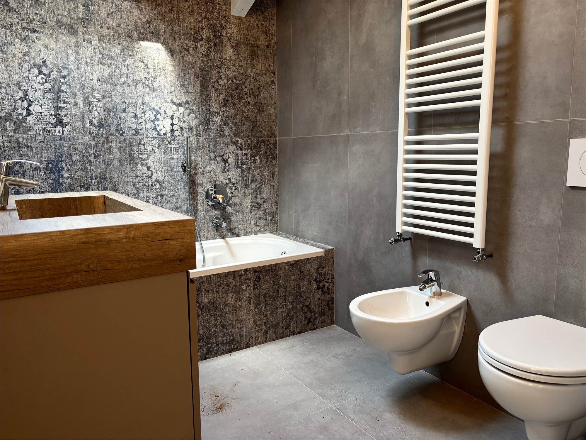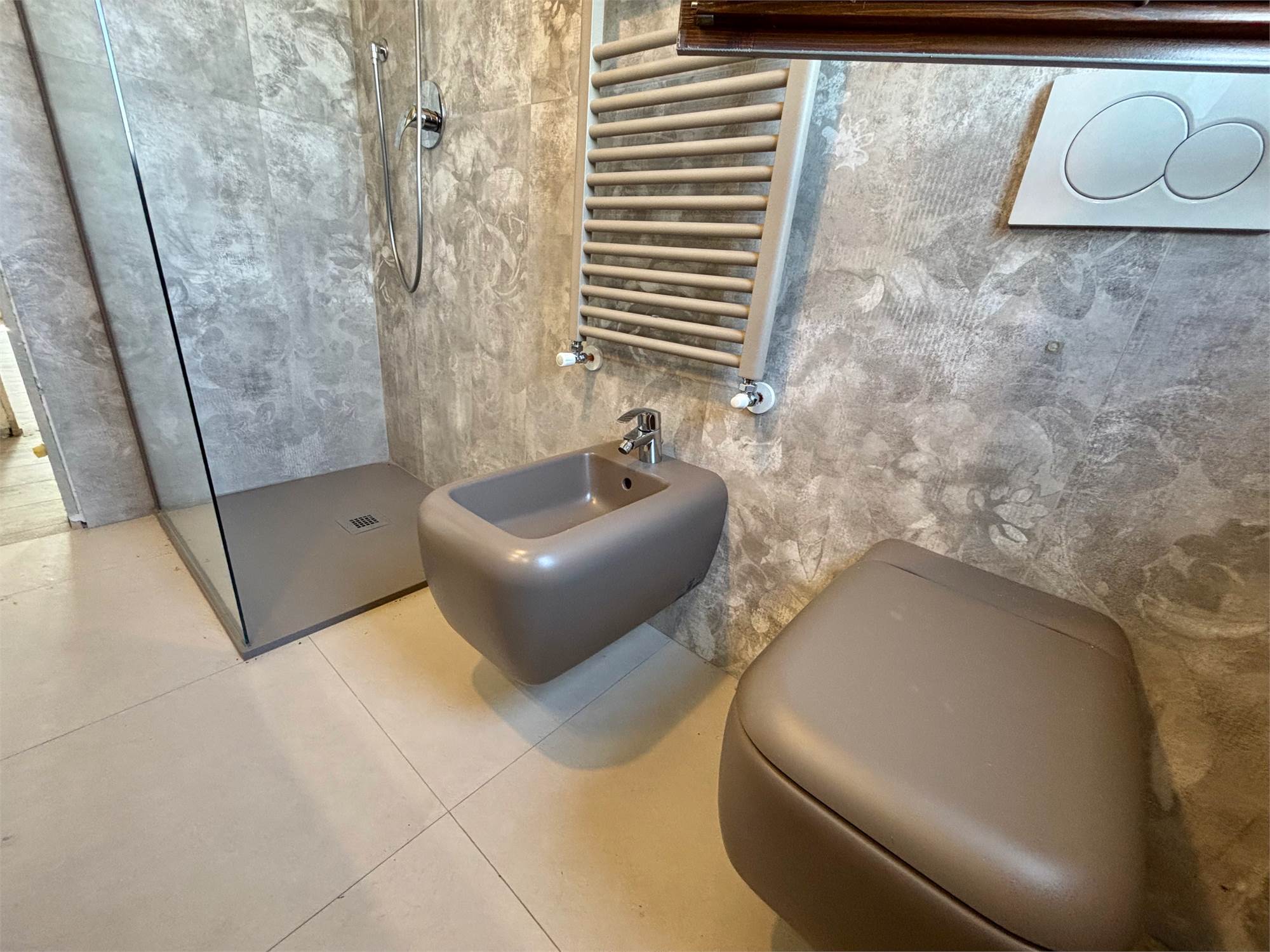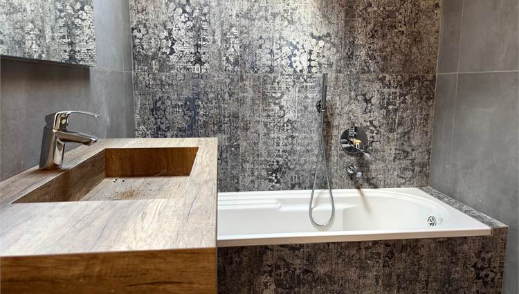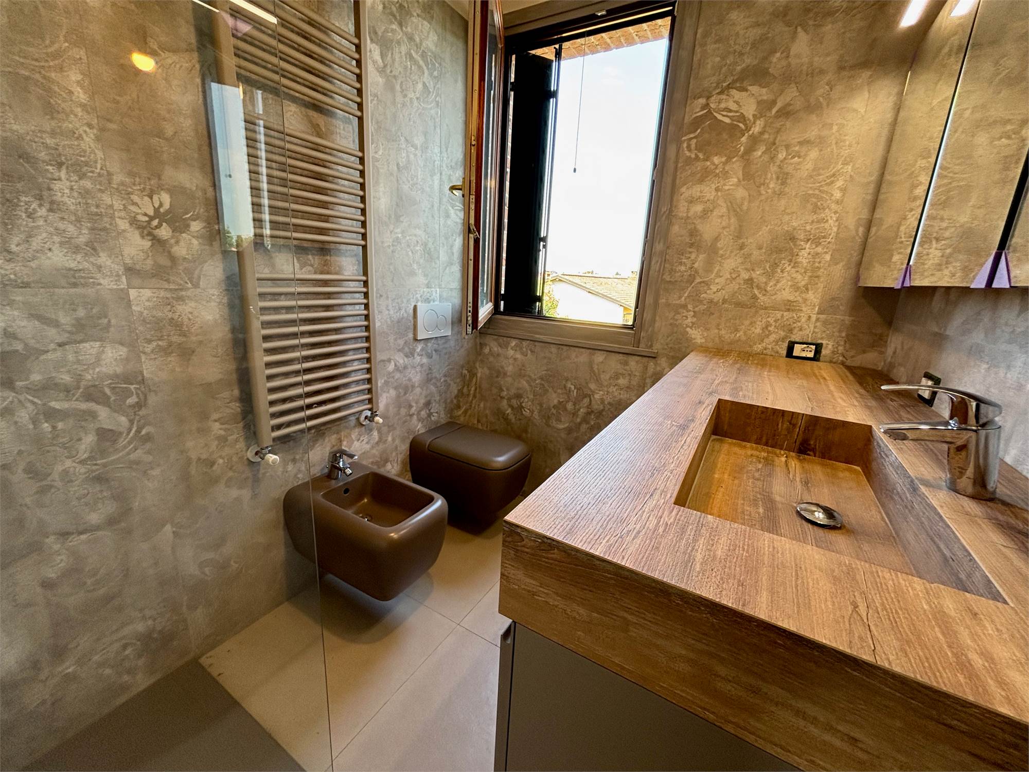 Da qui si accede anche ad altre due camere mansardate, arricchite da lucernari che regalano luce durante il giorno e, la sera, ti accompagnano mentre ti addormenti con lo sguardo rivolto alle stelle. A servizio della zona notte troviamo un secondo bagno completo con sanitari sospesi color tortora.